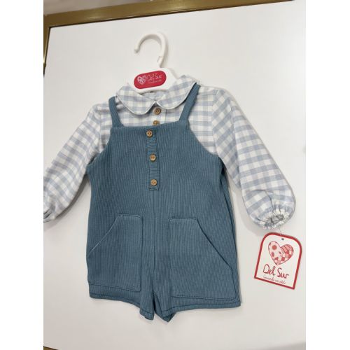 Completo con camicia Manica lunga a quadretti e salopette polvere a costine. Caldo cotone