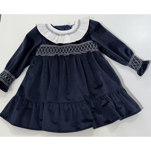 Vestina in velluto blu con punto smock in petto e pulsino bianco con collo rimovibile!