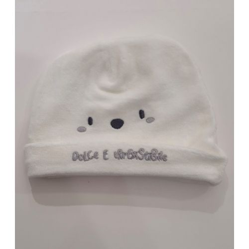 Cappellino in ciniglia-panna con scritta Dolce è irresistibile