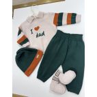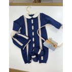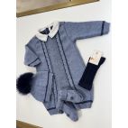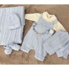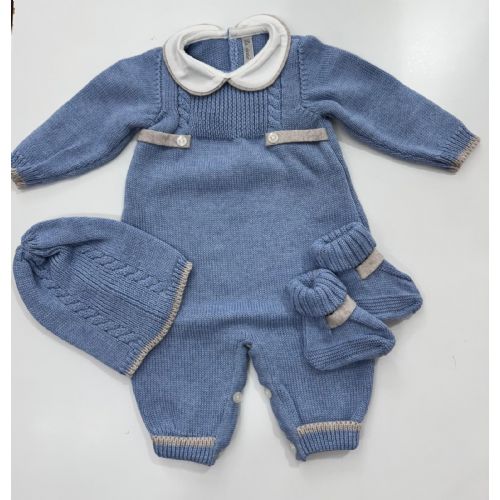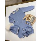 Tutina con cappellino e babbucce colore celeste e miele. 100% lana pettinata