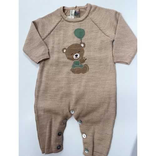 Tutina tortora con orsetto e palloncino verde .100% lana pettinata