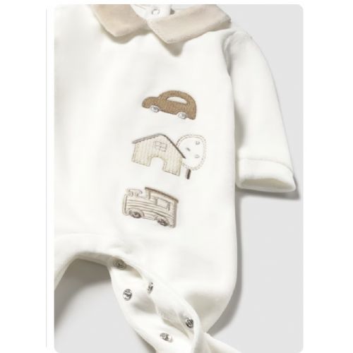 Tutina in ciniglia bianca e colletto tortora con cassetta e machine 🤍