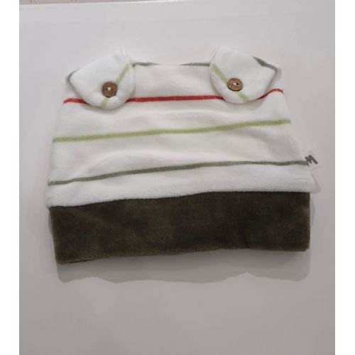 Cappellino in ciniglia panna a righe rosse e verdi e bordo verde bosco