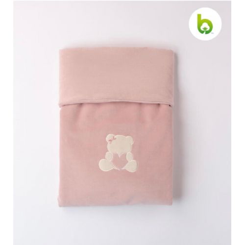 Coperta in ciniglia malva con orsetto al centro, morbida e calda. Per carrozzina