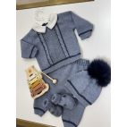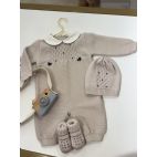 Tutina panna con trecce orizzontali avion il colore e più chiaro alla foto, cappello e babbucce coordinate. Misto Lana.