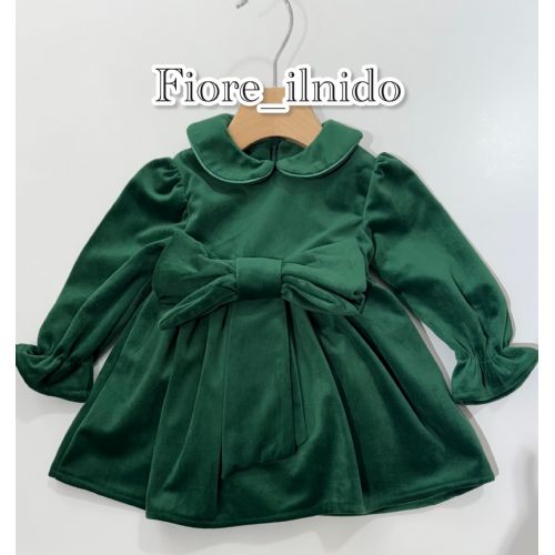 Vestina VERDE in velluto con fiocco avanti !